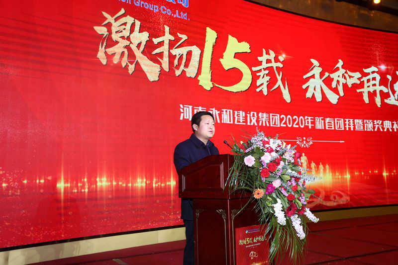 2020年1月18日下午,“激揚十五載永和再遠(yuǎn)航”——河南永和建設(shè)集團(tuán)2020年新春團(tuán)拜會暨頒獎典禮在錦江國際酒店隆重舉行。信陽市政協(xié)副主席、市工商聯(lián)主席陳豫,中共信陽市委副秘書長、河南日報社駐信陽記者站站長胡巨成,信陽市發(fā)展改革委員會主任張宗福等多位領(lǐng)導(dǎo)蒞臨。信陽日報、信陽晚報、信陽電視臺等多家媒體領(lǐng)導(dǎo)、新聞記者及河南永和建設(shè)集團(tuán)有限公司全體員工及家屬、合作商、社會各界人士等300余人歡聚一堂、共賀新春。