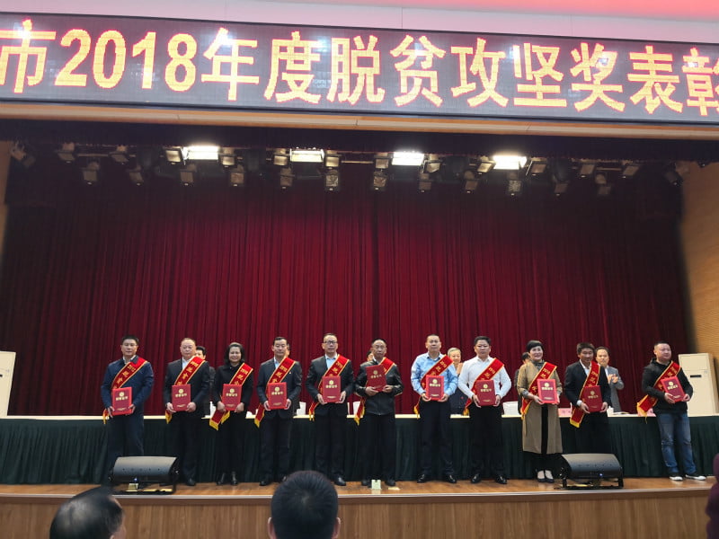 孔德穩(wěn)(中)榮獲信陽市2018年度脫貧攻堅“奉獻(xiàn)獎”